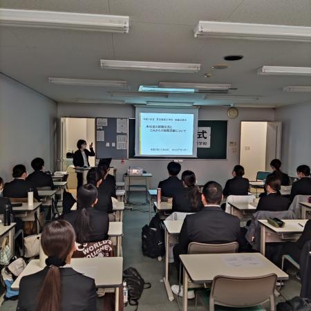 式の後半は、キャリアセンターの職員による実践的なガイダンス(就活必勝講座)です![]()