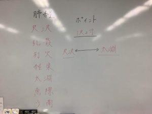 プリントに経穴の名前を書いて